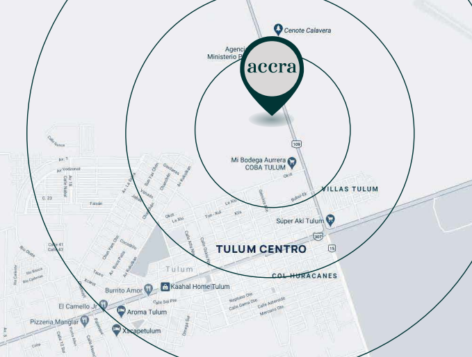 Accra, en el corazón de Tulum, es un punto clave para tu negocio, con alto flujo de personas gracias a la cercanía de la plaza comercial y residenciales.